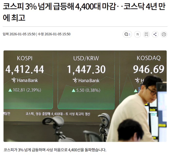 | 코스피, 상승 전환해 사상 처음 4,500선 돌파 (0) | 2026.01.06 |