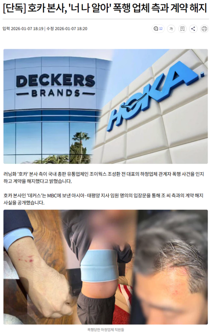 이어 "호카나 데커스 직원이 연루되지 않았지만, 유통업체에도 본사 수준의 높은 기준을 적용해, 발생한 행동에 대한 무관용 원칙의 일환으로 해당 유통업체와의 관계를 종료했다"고 전했습니다.