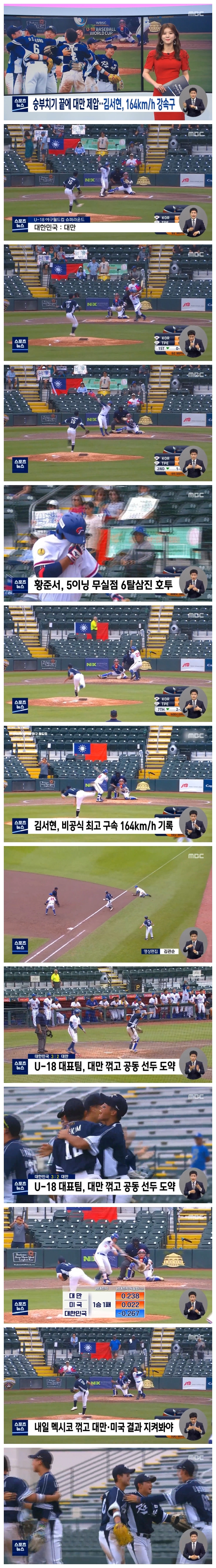 18세 이하 야구대표팀이 승부치기 접전 끝에 전승을 달리던 난적 대만을 꺾었습니다.