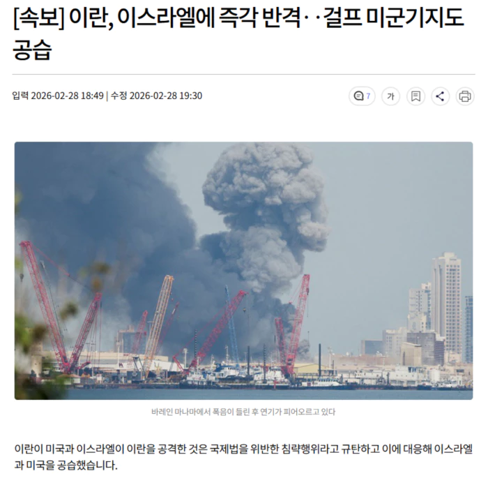 | 이스라엘, 이란 공격 시작.. 미국도 공격 참가 (0) | 2026.02.28 |