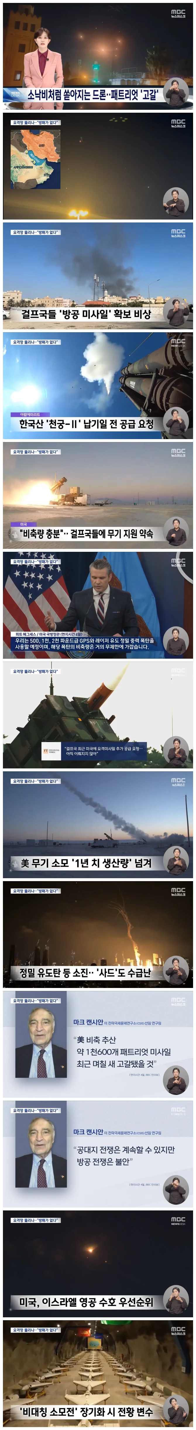 값싼 드론 등의 물량 공세를 펼치는 이란에 대응하기엔 비용 부담은 물론, 요격 미사일 확보부터 비상이 걸린 건데요.