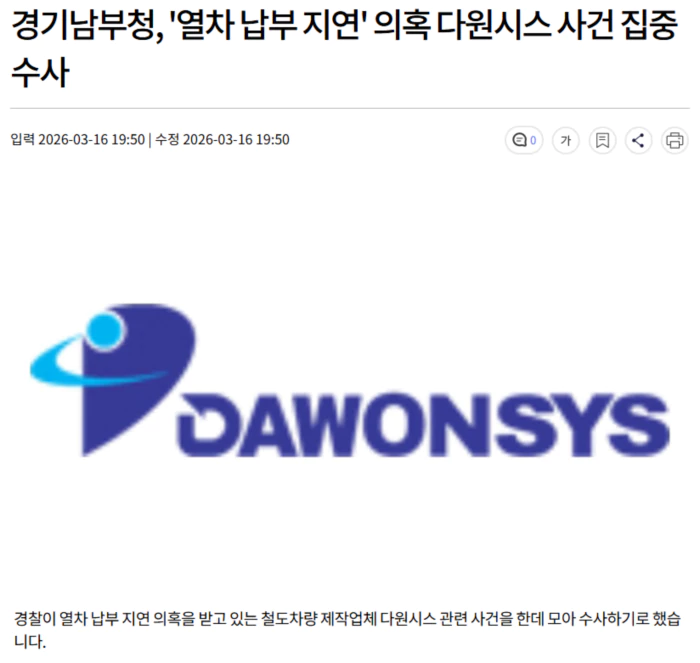 앞서 지난해 12월 국토교통부는 한국철도공사가 ITX-마음 신규 차량을 도입하려 2018년부터 다원시스와 모두 3차례에 걸쳐 열차 474량, 9,149억 원 규모의 철도차량 구매 계약을 체결했지만, 납품이 지연돼 경찰청 국가수사본부에 수사를 의뢰했습니다.