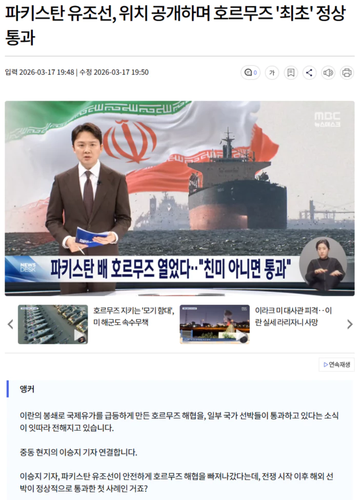 파키스탄과 마찬가지로 이번 전쟁에 중립적인 입장을 보여온 인도와 터키의 선박도 호르무즈 해협을 통과했다는 사실도 공개됐습니다.