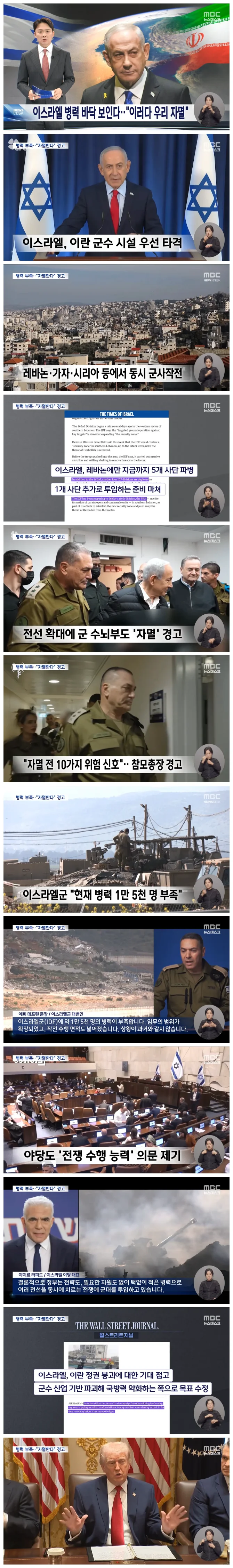 전선이 계속 확대돼 병력 부족이 현실화하면서 군 수뇌부에서조차 이러다간 이스라엘군이 자멸할 수 있다는 우려가 제기되는 겁니다.
