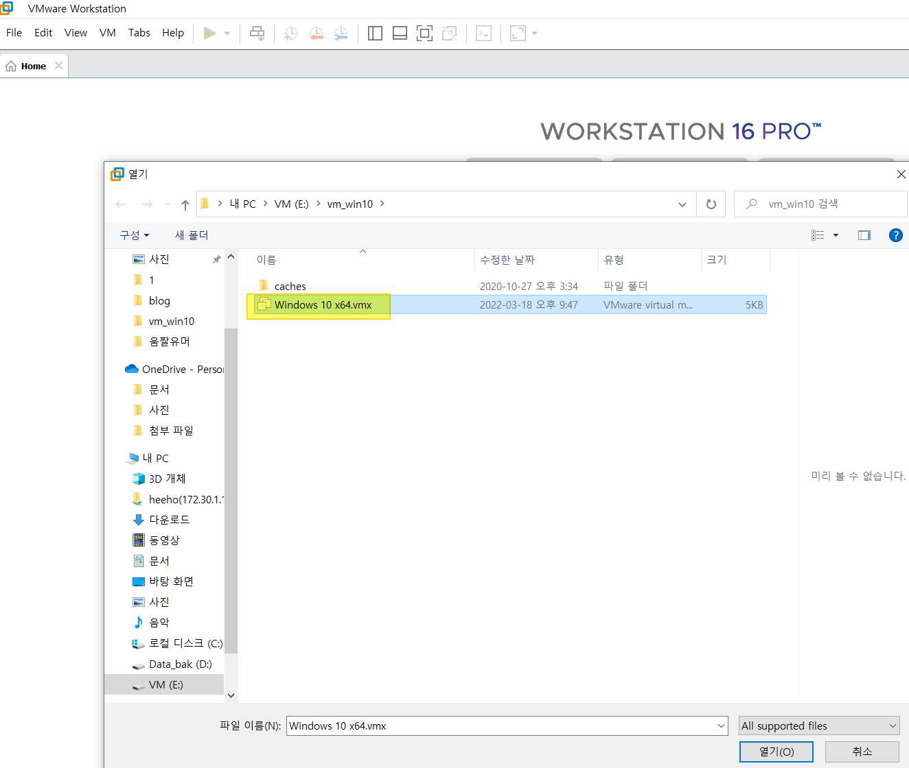 vmware>Open을 통해 본인이 사용하고 있는 vmware 이미지 폴더로 간다~~