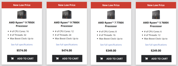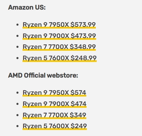AMD는 자체 공식 미국 웹 스토어에서 Newegg 및 Amazon과 동일한 가격의 Zen4 데스크톱 CPU를 가격을 등재 했습니다.