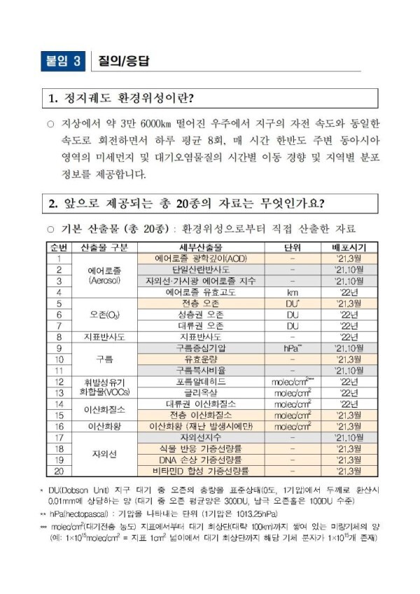 □ 환경부 소속 국립환경과학원(원장 김동진)은 아시아지역 대기오염물질 및 단기체류 기후변화 유발물질의 탐지와 대응을 위해 발사한 세계 최초 정지궤도 환경위성 자료 서비스 1주년을 맞이하여 환경위성 활용 성과를 공개했다.