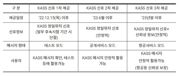 * 산업계 등에서 KASS 신호를 원활하게 적용 할 수 있도록 관련 기술정보, 제공일정 등은 한국항공우주연구원 KASS 사업단 누리집(http://www.KASS.re.kr)를 통해 제공 중
