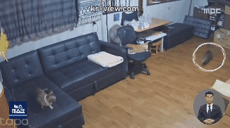 진동을 먼저 감지한 고양이들이 황급히 도망갑니다.
