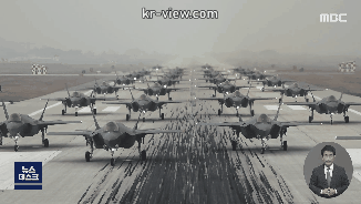 공군기지 활주로에 'F-35A' 스텔스 전투기 30여 대가 줄지어 늘어서 출격 명령을 기다리고 있습니다.