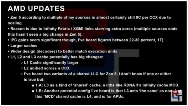 공유된 정보 중 일부는 AMD가 이미 Zen 5에 대해 언급한 내용을 요약한 것으로, 유튜버는 Zen 5에 더 넓은 디코더가 탑재되어 AMD의 실행 유닛에 더 많은 정보를 제공할 수 있다고 주장했습니다.