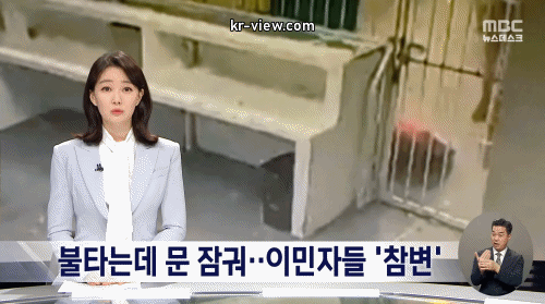 불이 났는데도 이민청 직원들이 출입문을 열어 주지 않고 도망가는 장면이 CCTV에 그대로 잡혔습니다.