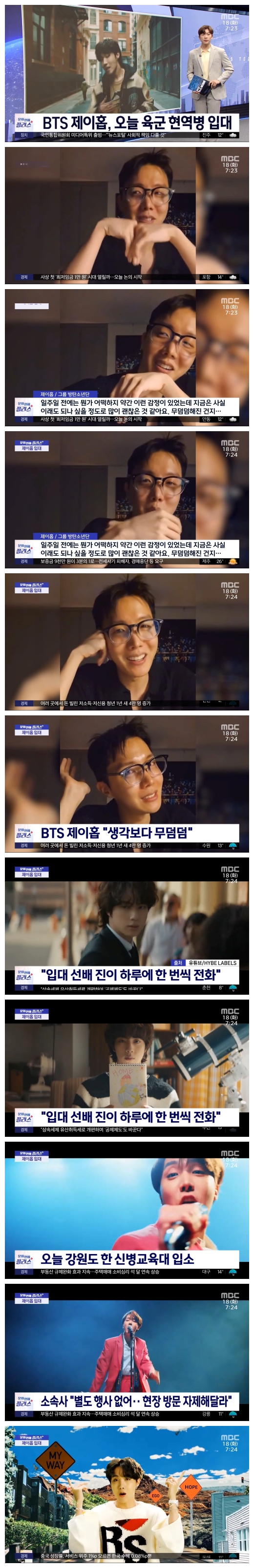 방탄소년단의 멤버 제이홉이, 멤버 중 맏형 진에 이어 두 번째로 오늘 입대합니다.
