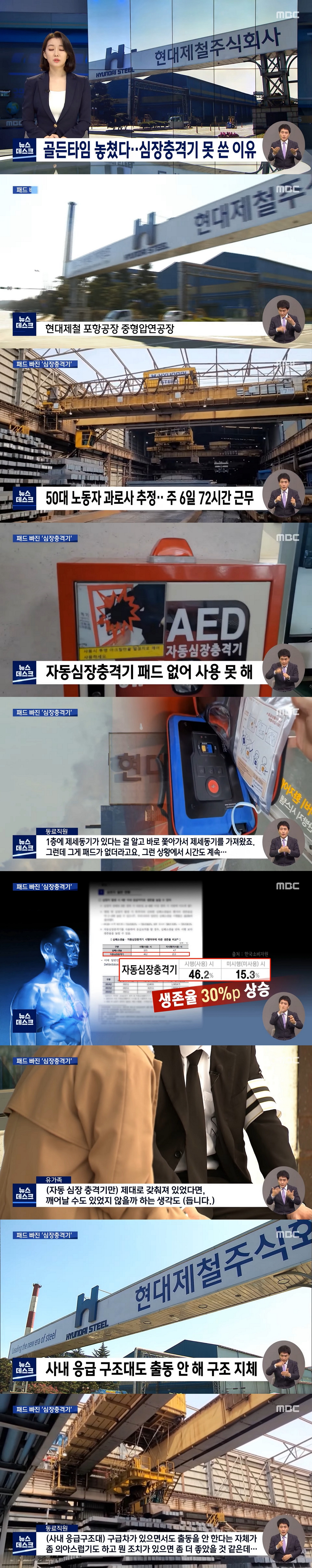 이 노동자가 쓰러진 현장에 자동 심장 충격기가 있었지만 제대로 작동을 하지 않아서, 골든 타임을 놓친 것으로 드러났습니다.