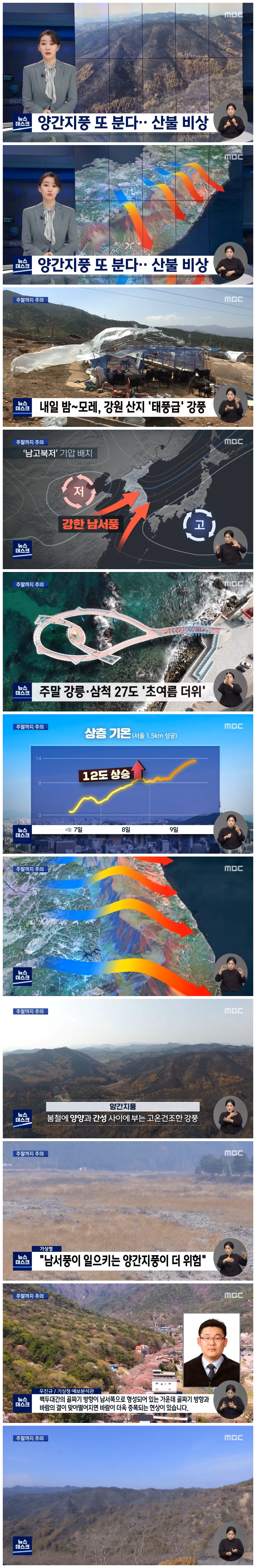 기상청은 그냥 서풍보다 이번처럼 남서풍이 일으키는 양간지풍이 더 위험할 수 있다고 경고합니다.