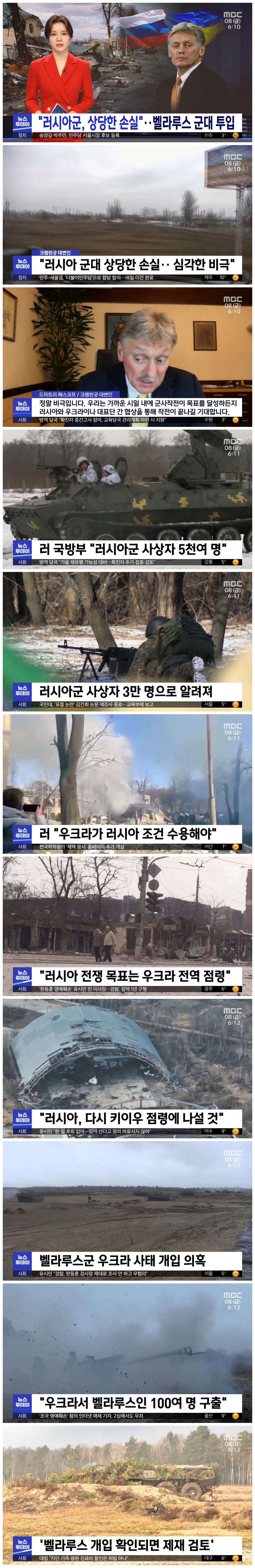 현지시간으로 7일, 러시아 크렘린궁 대변인은 영국 언론과의 인터뷰에서 러시아가 우크라이나 군사작전에서 상당한 군대 손실을 봤다며 러시아에는 심각한 비극이라고 말했습니다.