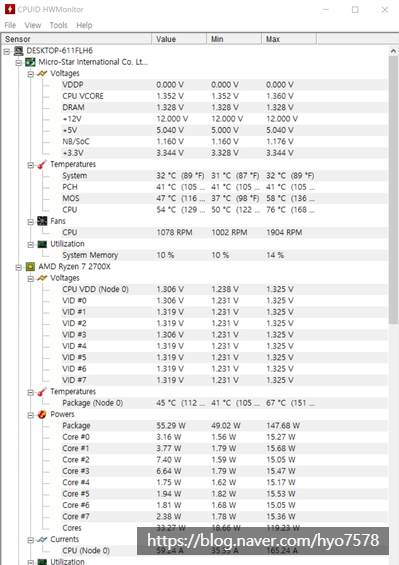 최고 온도는 67도로 준수한 상태를 보여주네요.