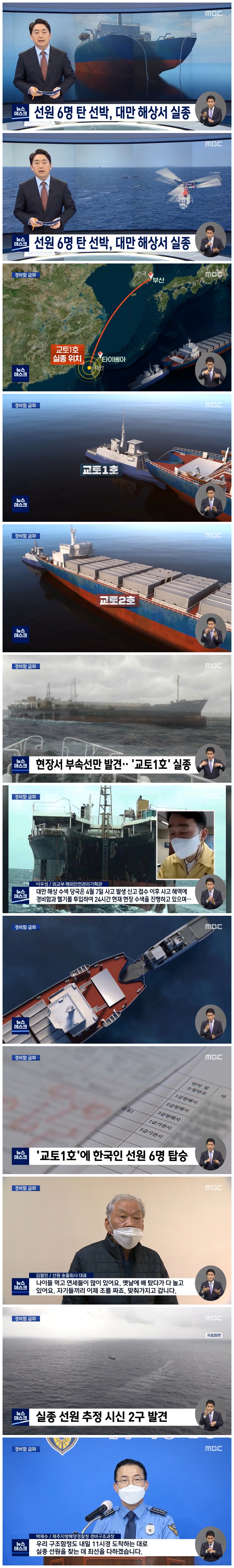 "대만 해상 수색 당국은 4월 7일 사고 발생 신고 접수 이후 사고 해역에 경비함과 헬기를 투입하여 24시간 현재 현장 수색을 진행하고 있으며‥"