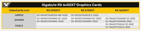 또한 Gigabyte는 3개의 RX 6750XT와 4개의 6650XT 모델을 곧 선보일 예정입니다.