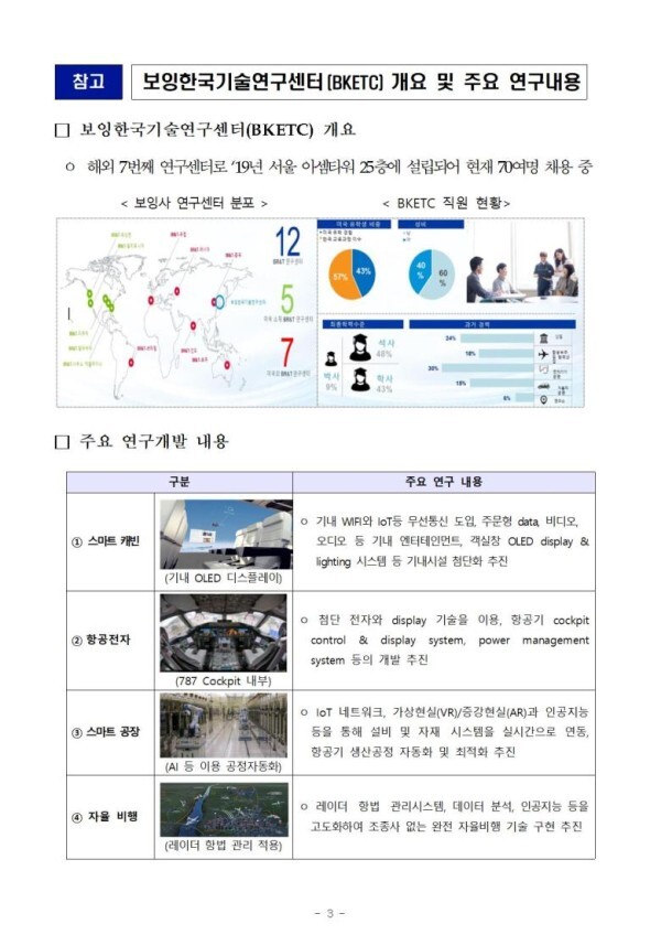 * Boeing Korea Engineering & Technology Center) : 세계 최대 항공우주방산기업 및 여객기 제조사인 보잉사에서 한국에 설립한 글로벌 R&D센터로 유럽, 호주, 브라질, 러시아 등에 이어 7번째로 개소(‘19년)