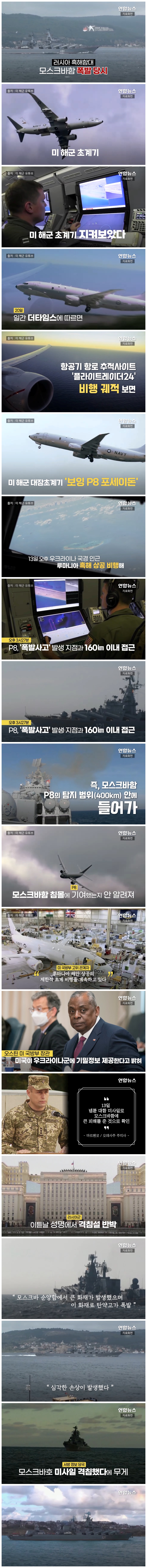 미국 해군의 최강 초계기가 러시아 모스크바함 폭발 현장을 탐지했을 가능성이 제기됐습니다.