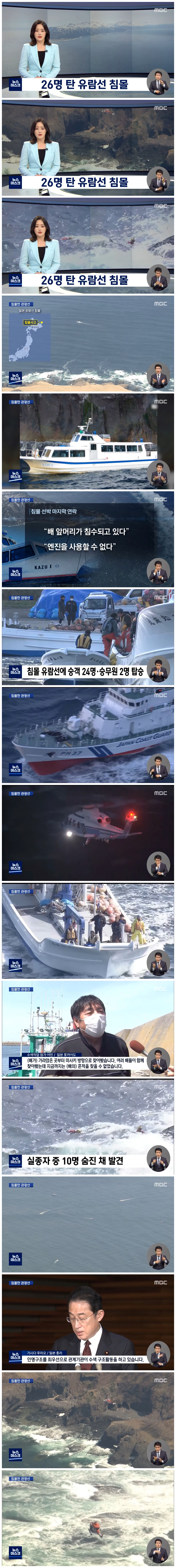 일본에서는 26명을 태운 유람선이 어제 홋카이도 인근에서 침몰했습니다.