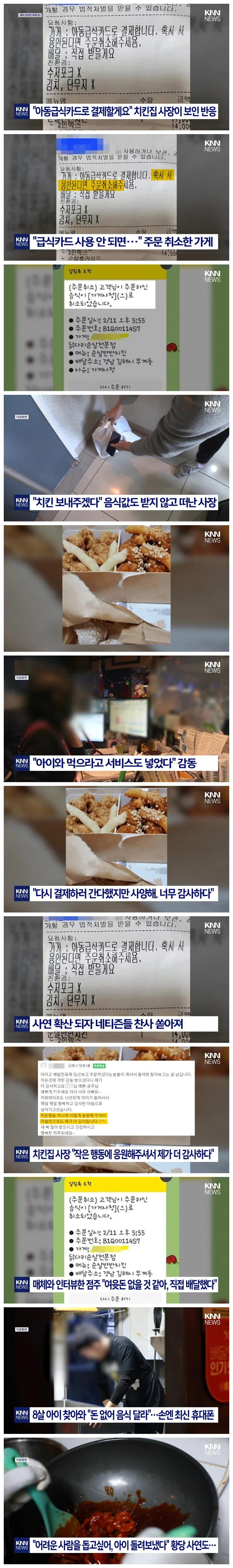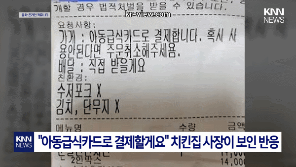 아동급식카드로 주문한 고객에게 한 치킨집 업주가 보인 반응이 화제입니다.