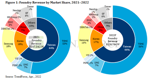 중요한 이유: Trendforce에 따르면 대만은 2022년에 전 세계 파운드리 용량의 48%를 제어하여 확실한 리더가 될 것입니다.