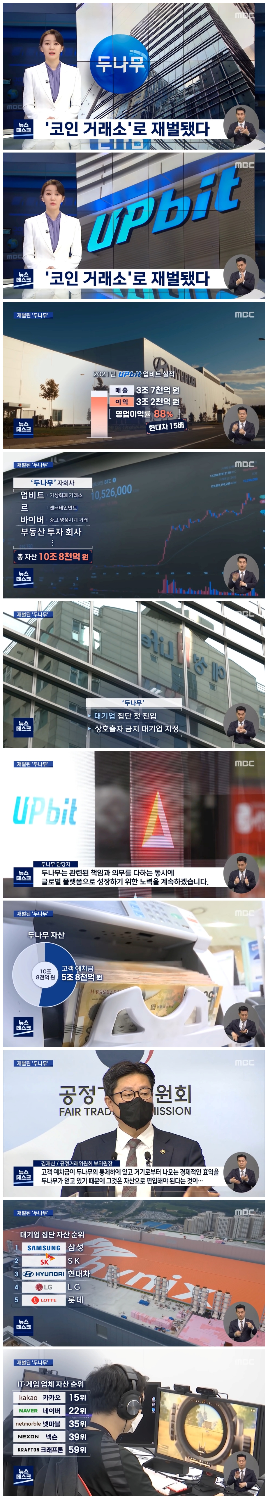 국내 최대 가상화폐 거래소인 업비트를 운영하는 '두나무'가 처음으로 대기업 집단에 이름을 올렸습니다.