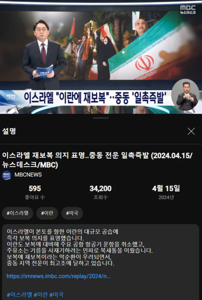 이스라엘 재보복 의지 표명.. 중동 전운 일촉즉발