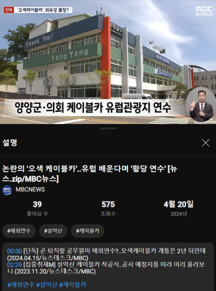 사업이 급물살을 타자 지난달 양양군과 의회 관계자들도 유럽으로 케이블카 관광지 연수를 다녀왔습니다.