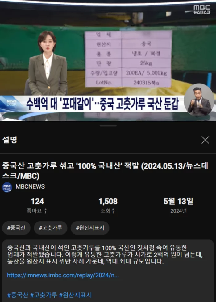 중국산 고춧가루 섞고 '100% 국내산' 적발