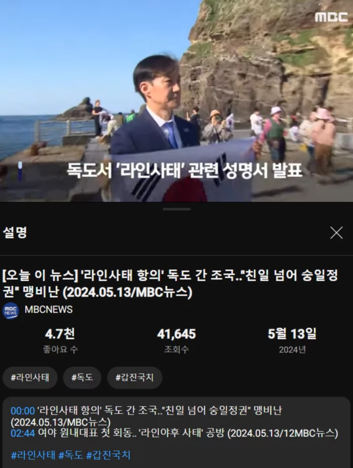 | 조국당 "독도 방문, 일본장관 쓰시마 가는 것과 무슨 차이? 기막혀" (27) | 2024.05.14 |