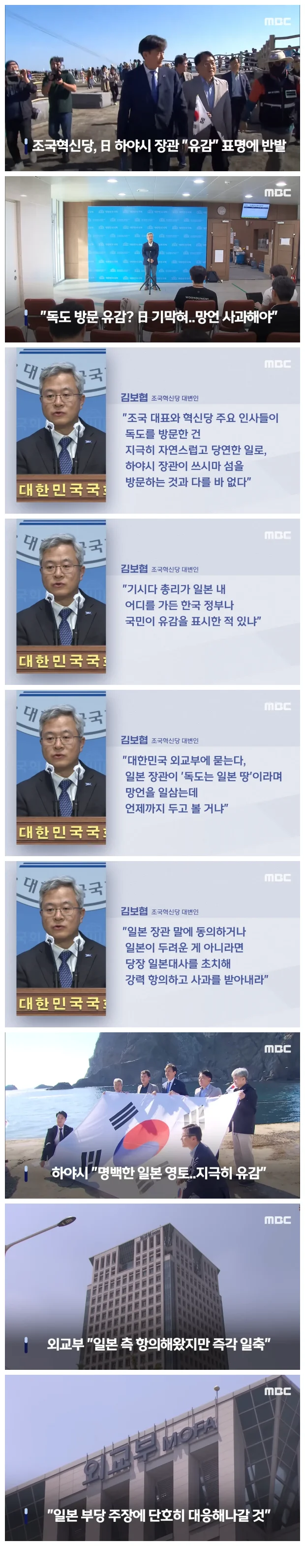 김보협 조국혁신당 대변인은 논평을 내고 "조국 대표와 주요 당직자들이 독도를 방문한 것에 대해 유감을 표시한 것인데 기가 막히다"며 "하야시 장관은 망언에 대해 사과하라"고 촉구했습니다.
