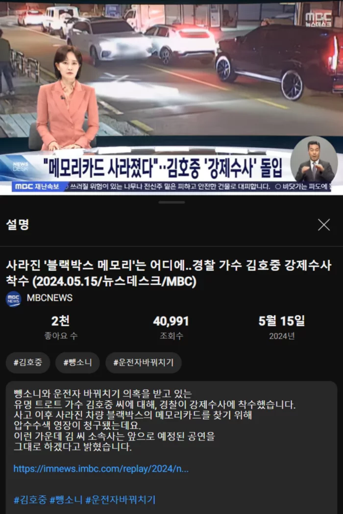 사라진 '블랙박스 메모리'는 어디에.. 경찰 가수 김호중 강제수사 착수