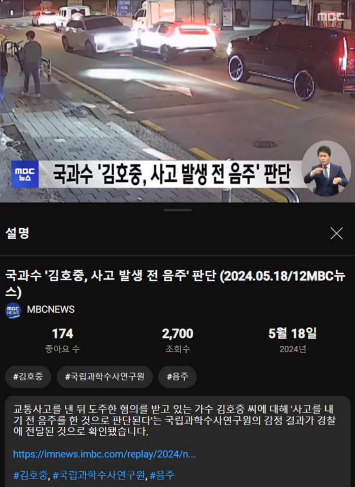 | 사라진 '블랙박스 메모리'는 어디에.. 경찰 가수 김호중 강제수사 착수 (18) | 2024.05.16 |