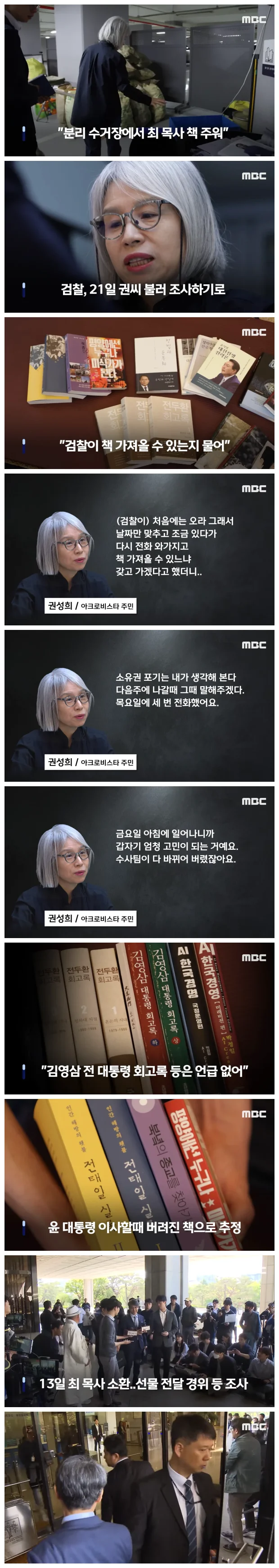 최재영 목사가 김건희 여사에게 건냈다고 했던 책들을 아크로비스타 분리수거장에서 주었다고 밝힌 아크로비스타 주민 권성희씨.