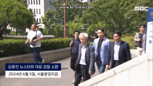 오늘 오전 10시쯤 검찰에 출석한 김용진 대표는 기자들에게 "이 자리에 누가 서야 된다고 생각하냐"고 묻고는 "주가조작, 명품백 하면 떠오르는 사람 있지 않냐"며 김건희 여사를 언급했습니다.