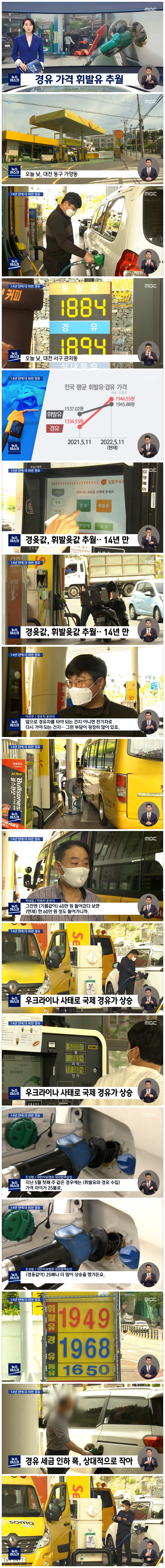 경유 가격이 휘발유 가격을 넘어선 게 지난 2008년 이후 14년 만인데요.