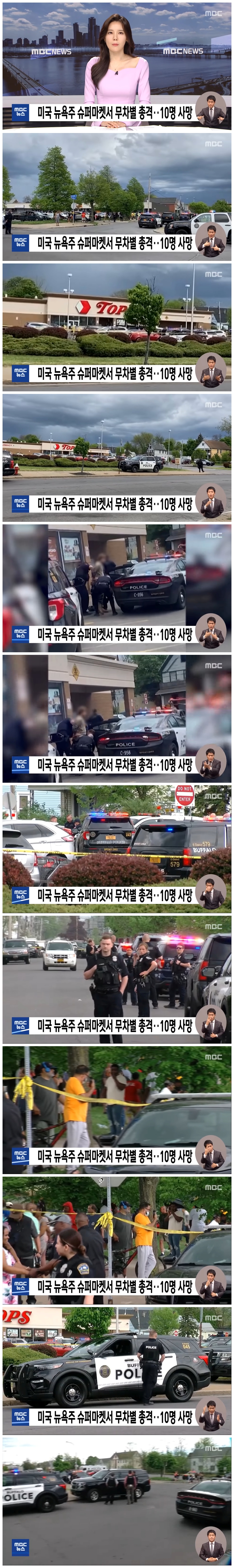 AP통신 등에 따르면 현지시간 14일 오후, 뉴욕주 북부 버펄로의 슈퍼마켓에 군복에 방탄복까지 착용한 괴한이 들어와 무차별 총격을 가했습니다.