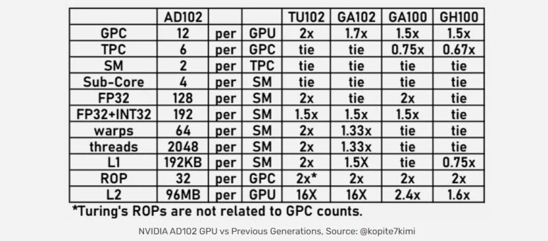 새로운 아키텍처는 훨씬 더 큰 L2 캐시와 더 많은 수의 FP32+IN32 코어를 특징으로 합니다.