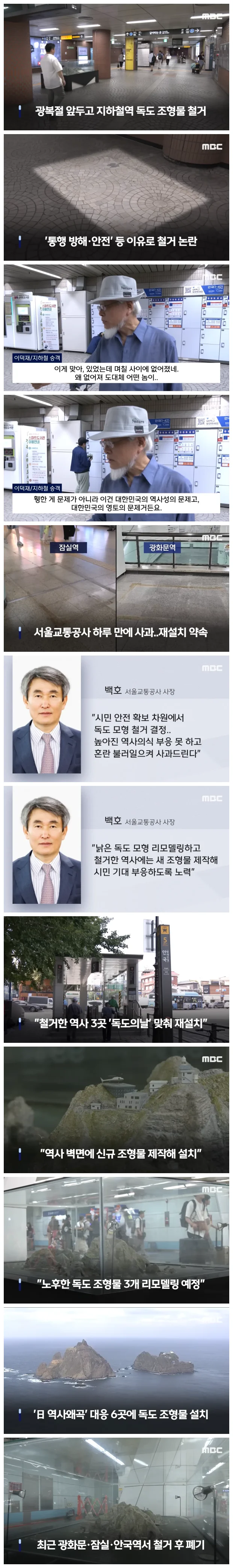 백호 서울교통공사 사장은 "시민 안전을 확보하는 차원에서 독도 모형 철거를 결정했지만, 시민들의 높아진 역사의식에 부응하지 못하고 혼란을 불러일으킨 점에 대해 사과드린다"며 고개를 숙였습니다.