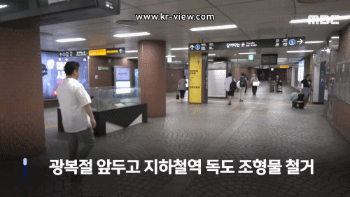 광복절을 앞두고 '통행 방해'와 '안전' 등을 이유로 잇따라 철거 후 곧바로 폐기 처분된 서울 지하철역사의 독도 조형물.