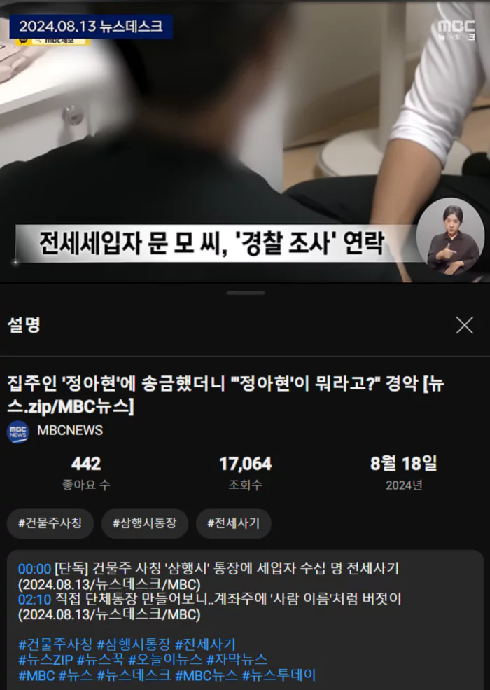 "'(임대 보증금을) 입금시키신 분 통장이 이거는 집주인 통장이 아니고 모임(단체) 통장'이라고. 저는 깜짝 놀라서 그 사실을 알았죠."