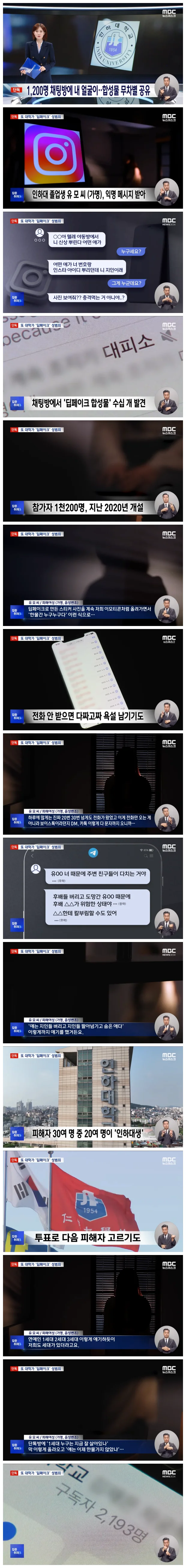 이번에는 인하대학교에서, 여학생들의 딥페이크 합성물을 공유하는 단체 채팅방이 운영된 사실이 드러났습니다.