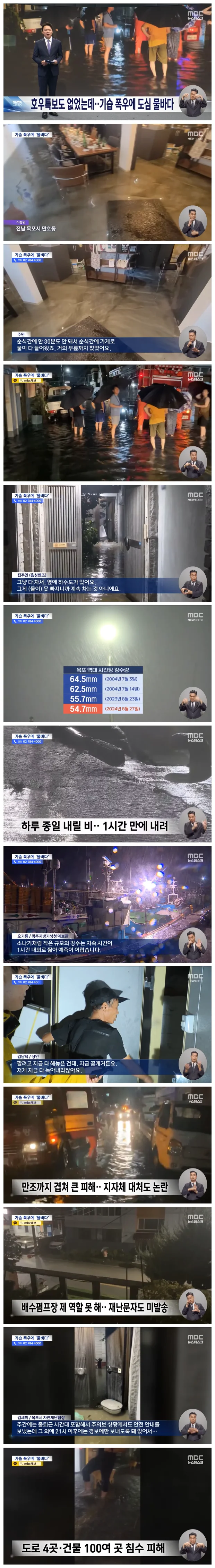 예상을 뛰어넘는 폭우에 불과 1시간 만에 피해가 속출했습니다.
