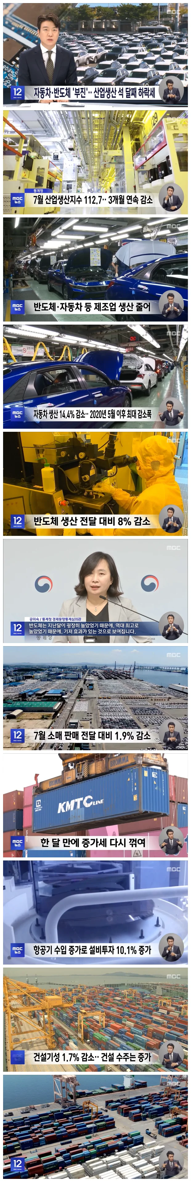 7월 산업생산이 직전 달보다 줄어들면서 3개월 연속 감소세를 이어갔습니다.
