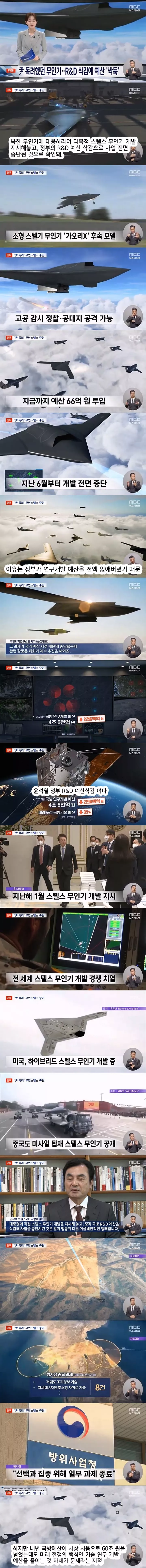 윤석열 대통령도 북한 무인기에 대응하라며 다목적 스텔스 무인기 개발을 직접 독려했는데, 이 중요한 사업이 정부의 R&D 예산 삭감으로 전면 중단된 것으로 확인됐습니다.