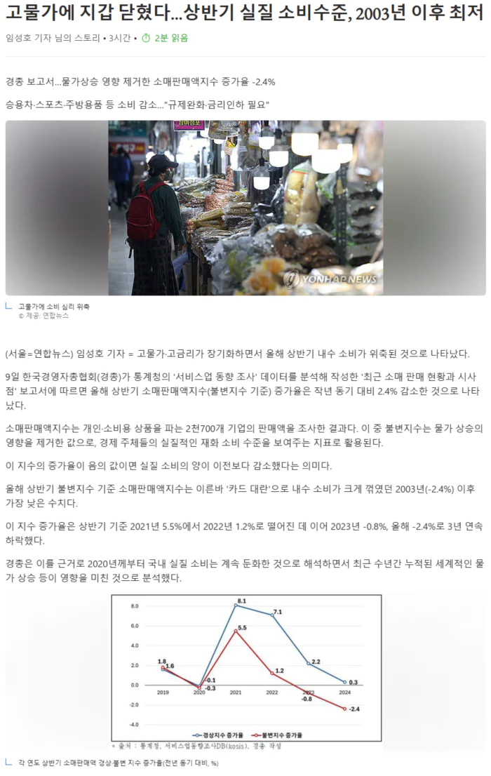 (출처 : 고물가에 지갑 닫혔다…상반기 실질 소비수준, 2003년 이후 최저)