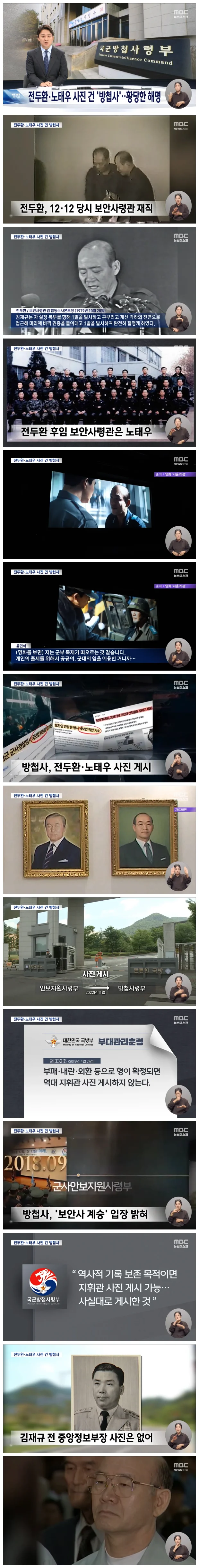 과거 12.12 군사 반란 당시 전두환이 사령관으로 있던 보안사령부의 업무를 잇는 방첩사령부가 청사 복도에 전두환의 사진을 다시 걸어놓은 것으로 확인됐습니다.